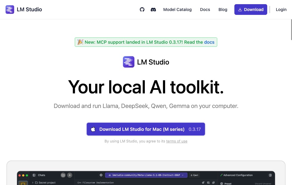 ローカルでLLaMAやQwenなどを動作可能。MCP経由の連携にも利用されることがあります。